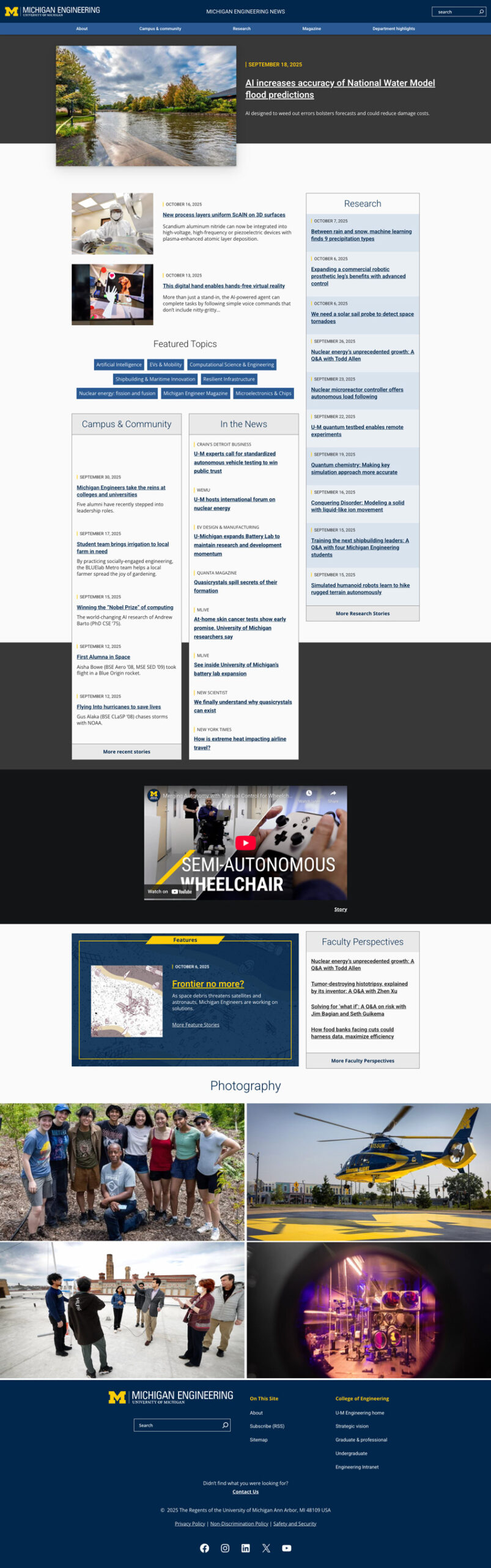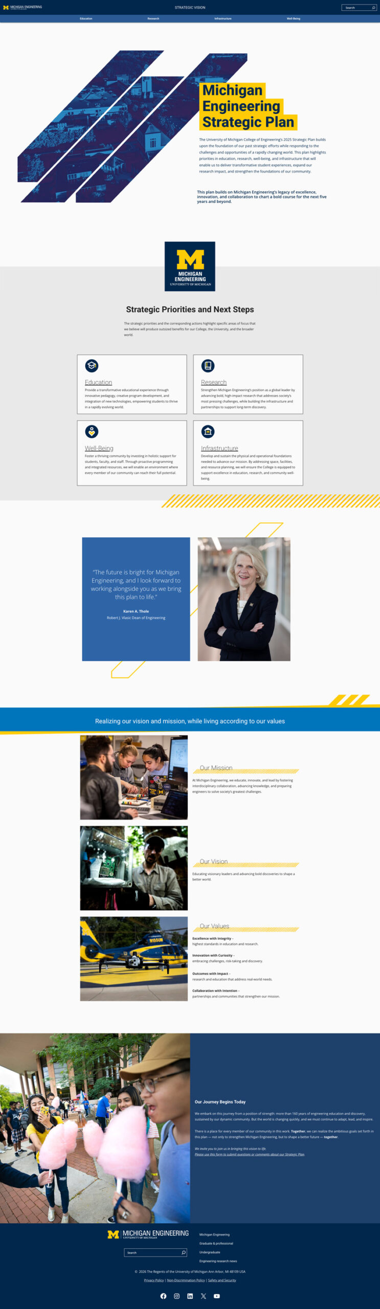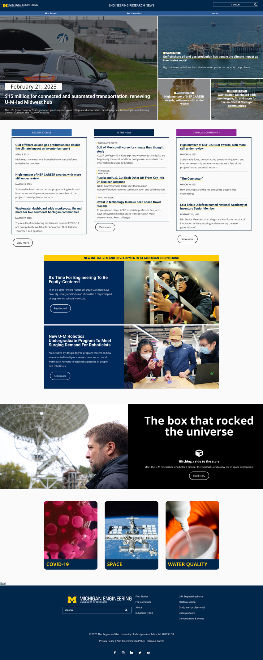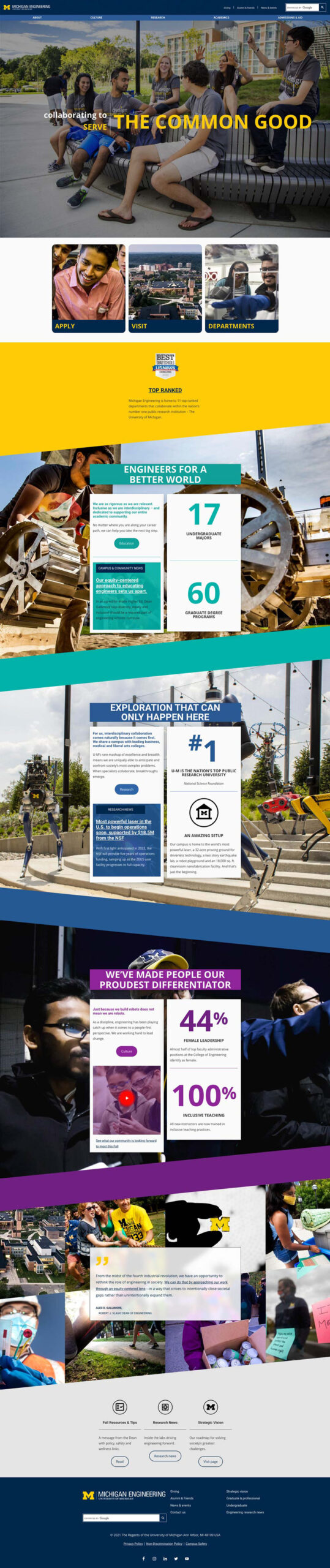 I have over ten years of experience in web design, beginning in graduate school managing a student organization’s website and progressing to designing full web components for the College of Engineering at Michigan. While the core design principles remain consistent, increased scale and audience size have shaped more complex design decisions.