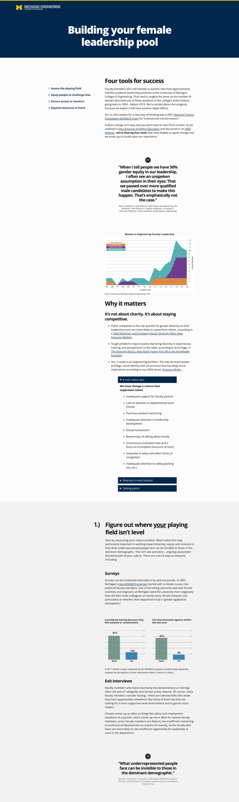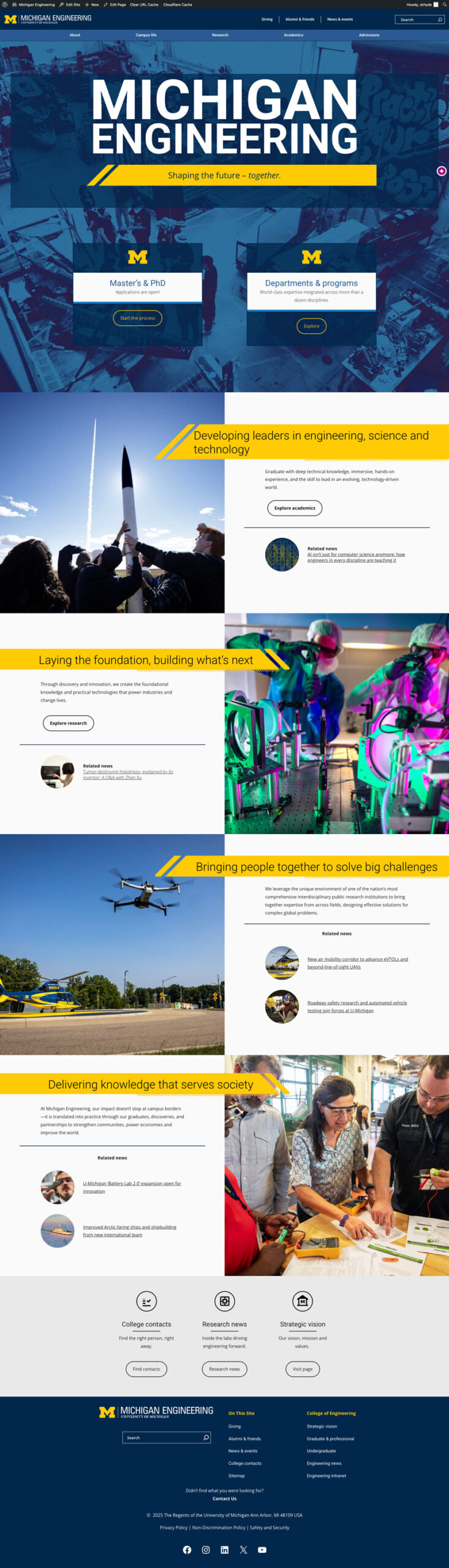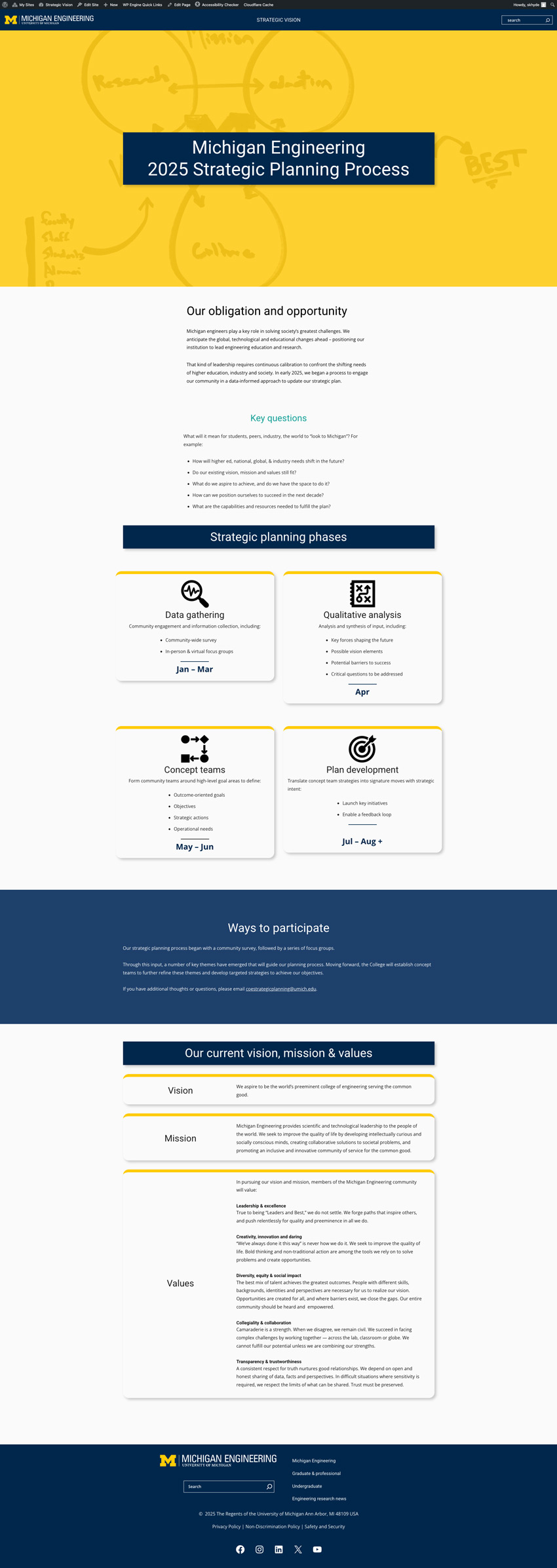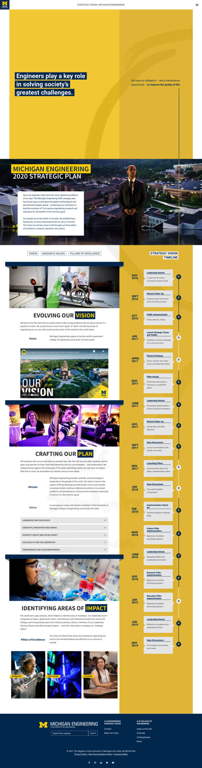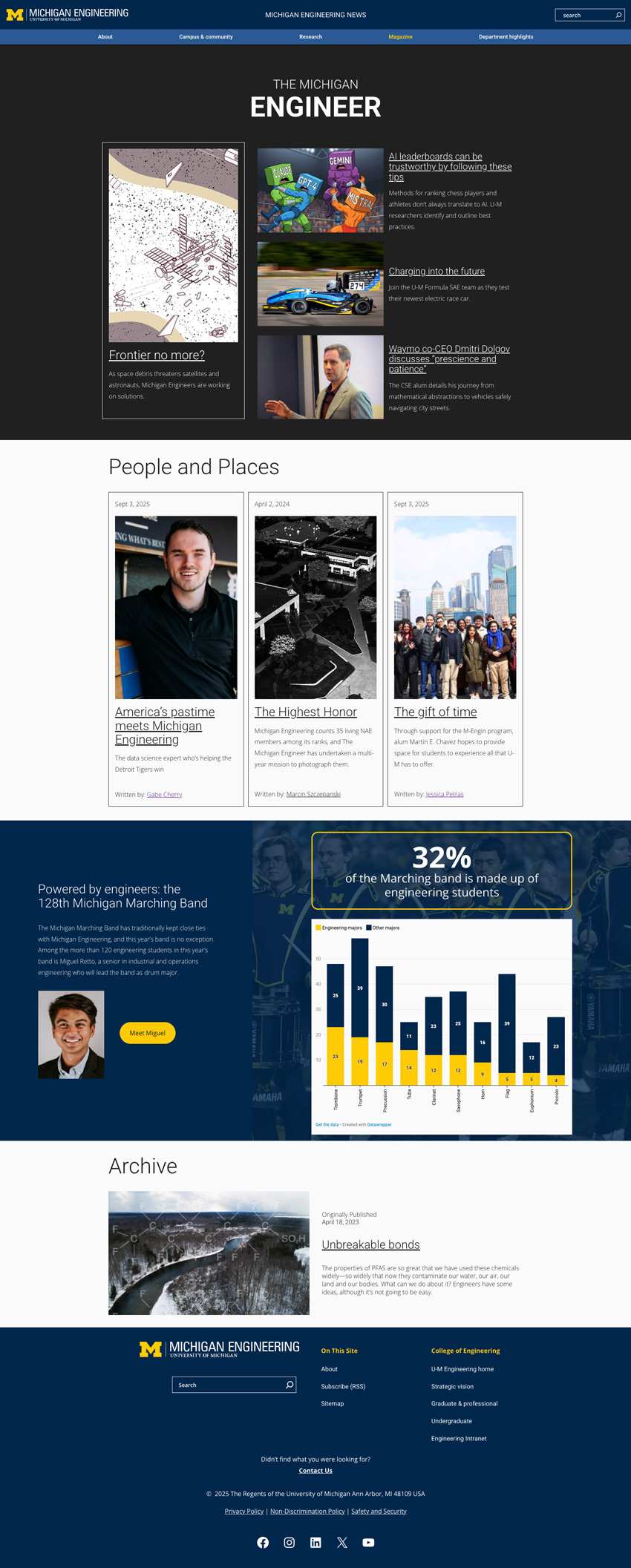 I have over ten years of experience in web design, beginning in graduate school managing a student organization’s website and progressing to designing full web components for the College of Engineering at Michigan. While the core design principles remain consistent, increased scale and audience size have shaped more complex design decisions.